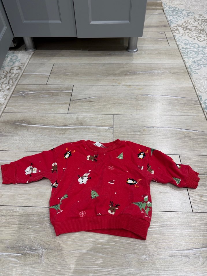 Uzun kollu, bisiklet yaka ve bol kesim kırmızı erkek çocuk sweatshirtü. Yumuşak ve sıcak kumaştan, renkli nakışlı desenlerle süslenmiştir.