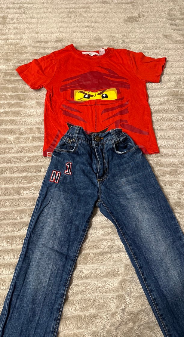 Erkek Çocuk Kırmızı Tişört ve Kot Pantolon