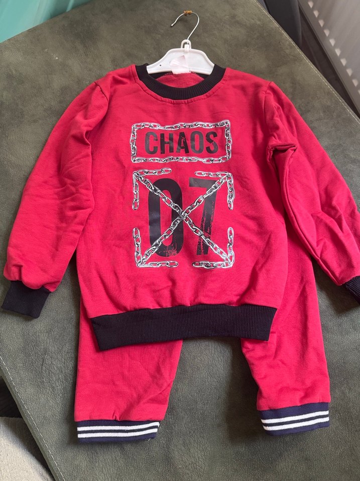 Uzun kollu, bisiklet yaka ve bol kesim kırmızı sweatshirt. Önünde zincir detaylı renkli baskılar "CHAOS" ve "X" yazılıdır. Yumuşak ve sıcak kumaştan üretilmiştir.