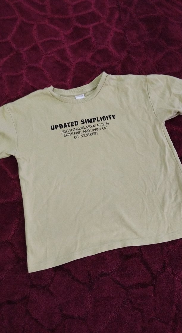kısa kollu erkek çocuk tişörtü, yumuşak keten kumaştan üretilmiştir. Salaş kesimi ve önünde "UPDATED SIMPLICITY" yazısı bulunur. Rahat sokak tarzı için uygundur.