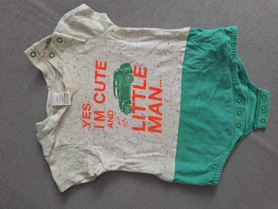 Pamuk kumaştan yapılmış, baskılı yazılı kısa kollu erkek çocuk tişörtü. Fitted kesim, yuvarlak yaka ve yeşil örme alt kısmı bulunur.