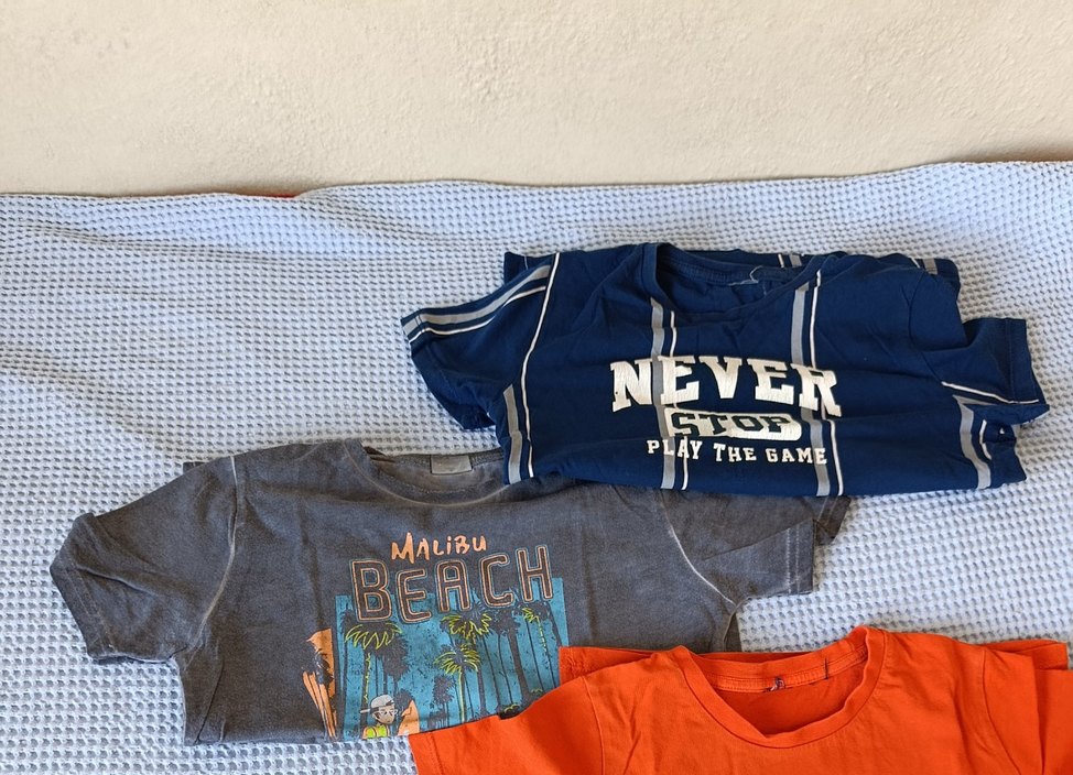 Erkek çocuklar için kısa kollu, bol kesim, bisiklet yaka tişörtler. Baskılı desenler ve cırt cırtlı detay içerir. Mavi, gri ve turuncu renklerde, sahil ve oyun temalı.