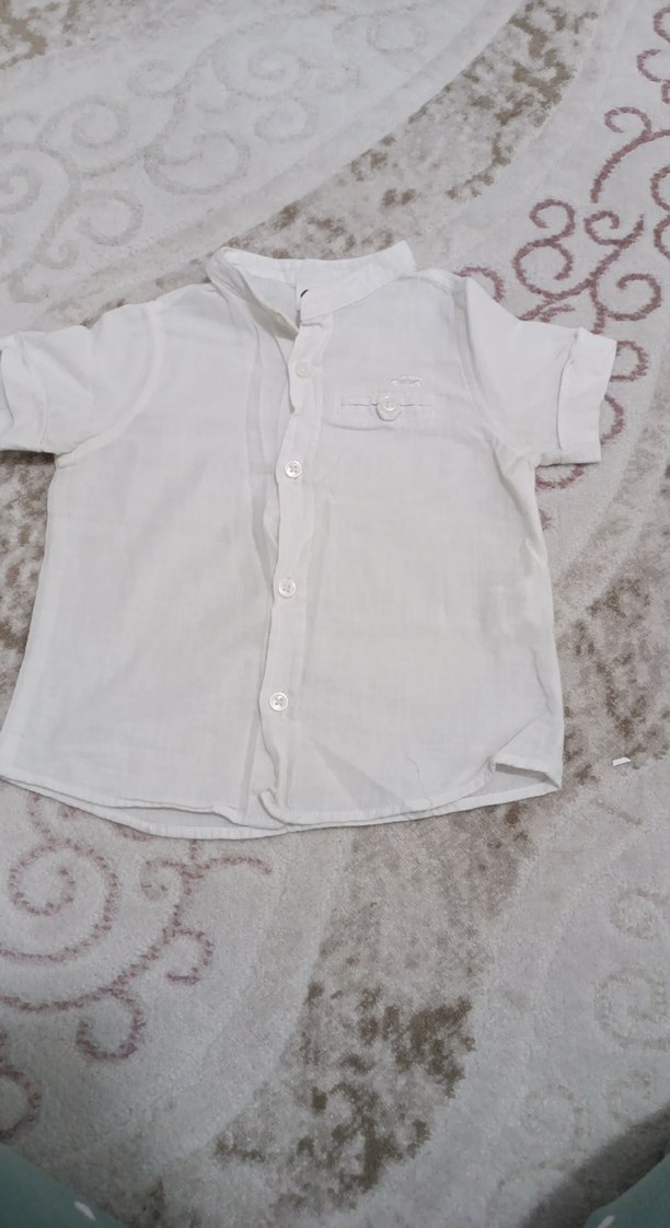 Pamuk kumaştan, kısa kollu, yakalı ve düğmeli erkek çocuk gömleği. Salaş kesim, sade ve basic tarzda.