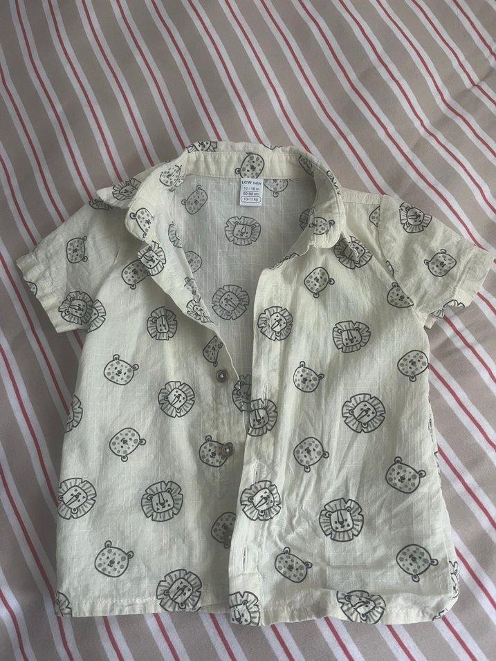 Erkek çocuklar için keten kumaştan, düğmeli, kısa kollu, yakalı ve bol kesim gömlek. Üzerinde eğlenceli baskılı desenler bulunur.
