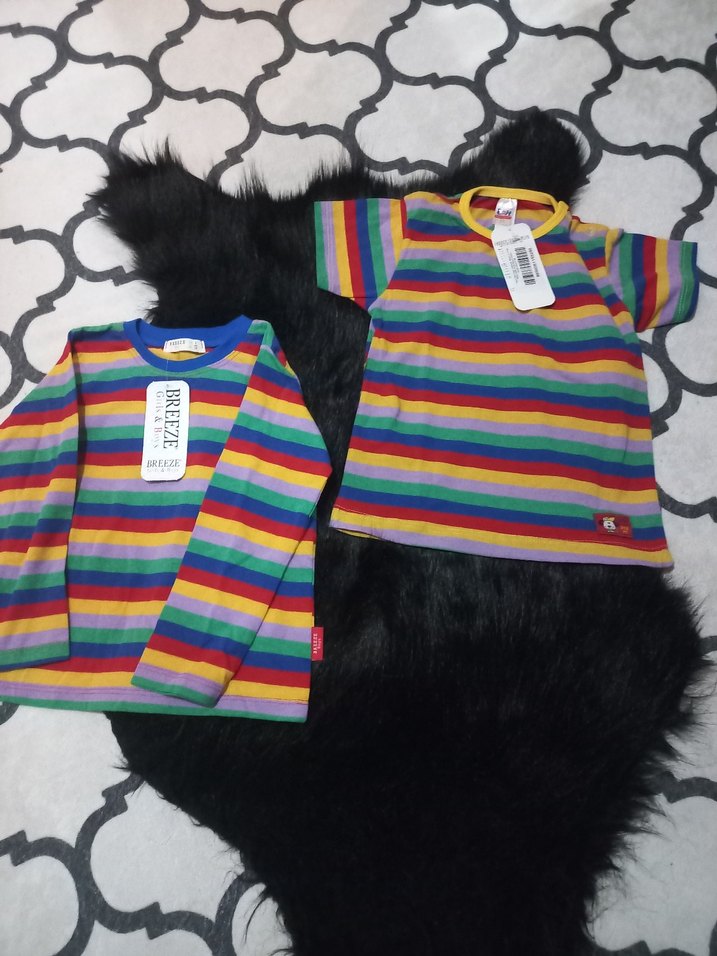 Çizgili çok renkli erkek cocuk , kısa ve uzun kollu seçeneklerle, yumuşak kumaştan üretilmiştir.