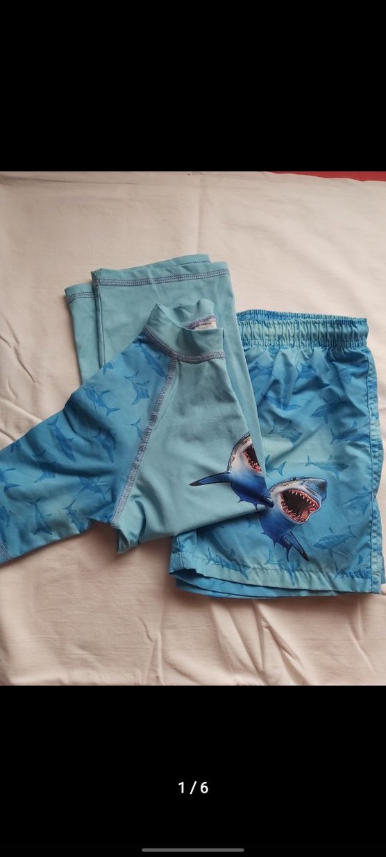 Erkek çocuklar için kısa kollu üst ve köpekbalığı desenli mavi mayo şortundan oluşan renkli yüzme takımı. çok az giyildi.Bedenen olmadığı için satıyorum. isterseniz Diğer erkek çocuk kıyafetleri ile takım olarak da alabilirsiniz ona göre ayrı ilan açarım. beden ölçüleri resimlerde mevcut.sorulariniz varsa yorumlara yazabilirsiniz.markasi detaylarda yazdığı gibi fakat sadece etiketi kesildi.