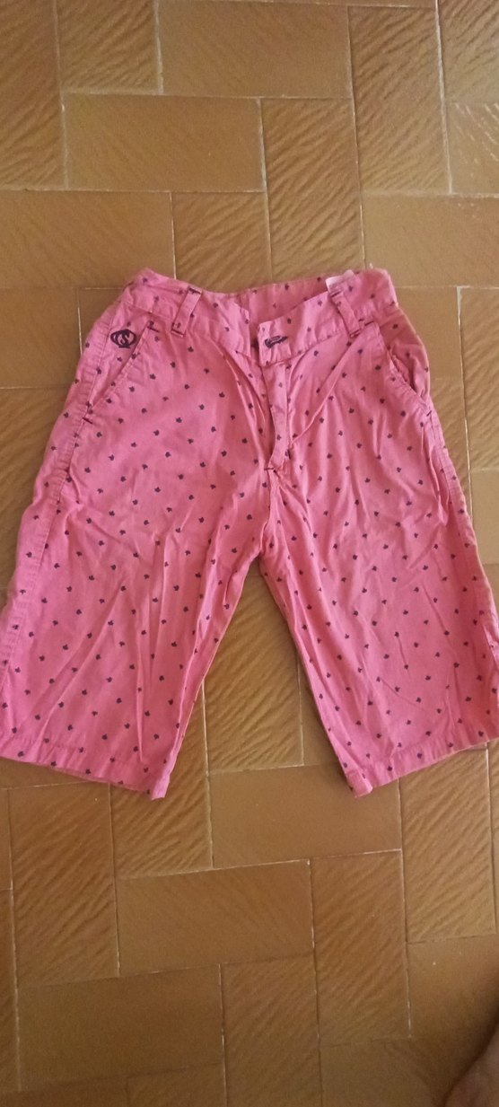Sayılı kullanilmistir beli gizli lastikle ayarlana bilir.Hic bir deformasyonu yoktur .Pamuklu, düğmeli, bol kesim pembe mini şort. minik yaprak desenli ve günlük rahat kullanım için uygundur.