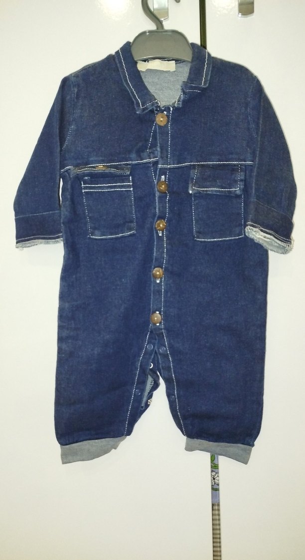 Koyu mavi kot kumaştan yapılmış, düğmeli, uzun kollu ve regular fit erkek çocuk tulumu. Önde cepli ve manşetli, streetwear tarzında.