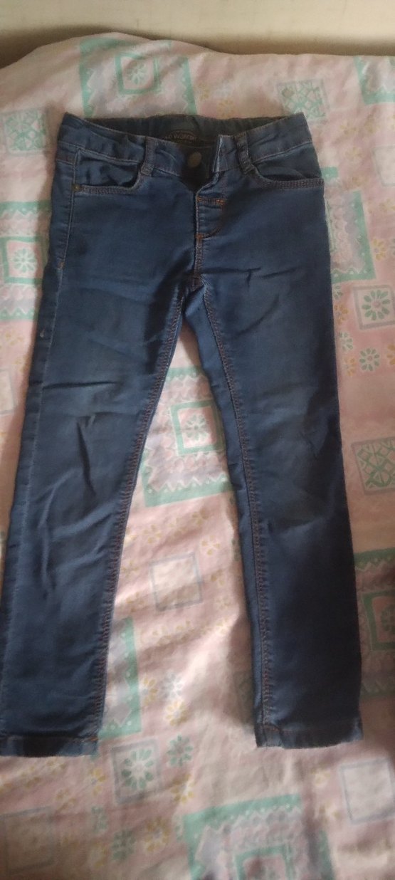 Erkek çocuklar için koyu mavi denim pantolon, regular fit ve düğmeli kapama. Bağlama desenli, trend sokak stili görünümü sunar.