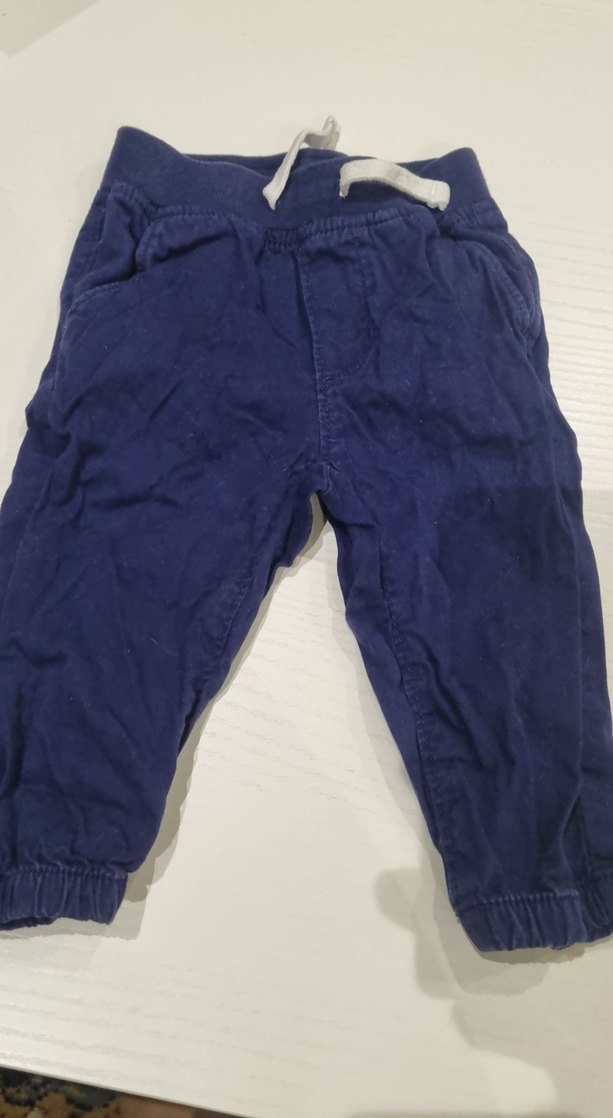 Erkek çocuklar için koyu mavi denim pantolon, bol kesim ve düğmeli detaylara sahiptir. Rahatlık için elastik bel ve paça manşetleri bulunur.