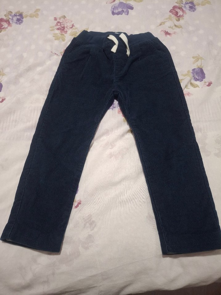 Erkek çocuklar için düğmeli, koyu mavi bol kesim kot pantolon. Rahat ve sade tasarıma sahiptir. fitilli pantolon yepyeni bir kaç kez giyildi içi astarlı paçalarını kıvırarakta kullanılıyor sıcak tutuyor
