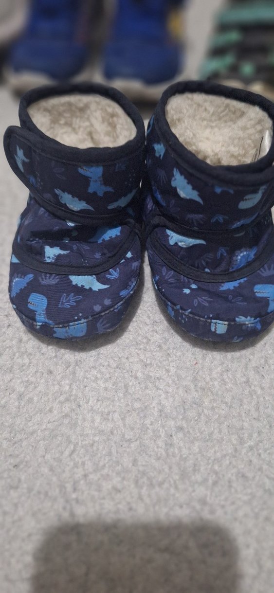Koyu mavi bağcıklı erkek çocuk terlikleri, bağcıklı ve yumuşak kürklü iç yüzeye sahiptir. Bağcıklı, rahat ve sıcak tutar.