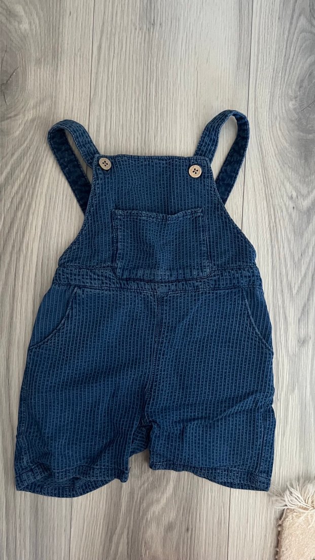 Koyu mavi denim, askılı ve tokalı erkek çocuk tulumu, ön cepli, sade normcore tarzda. Rahat kullanım için uygundur. Yumuşak kot
