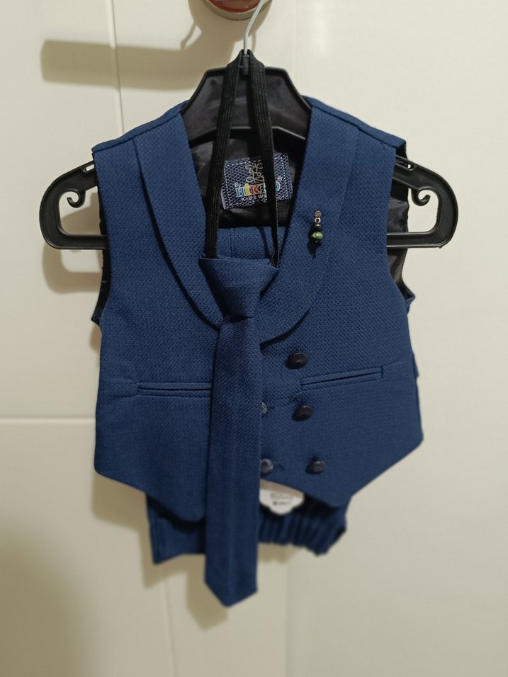 Erkek Çocuk Koyu Mavi Düğmeli Yelek Takım
