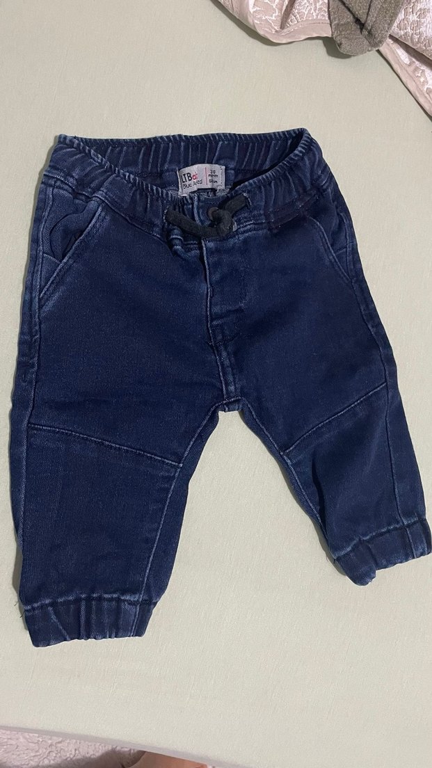 Erkek çocuklar için koyu mavi denim pantolon, elastik bel ve paçalarla, sade ve sokak stili uyumlu kesimde.