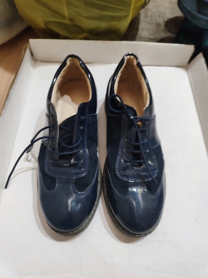 Koyu mavi lastik malzemeden yapılmış, tokalı ve desen içermeyen erkek çocuk özel ayakkabısı, sokak stiliyle uyumlu.