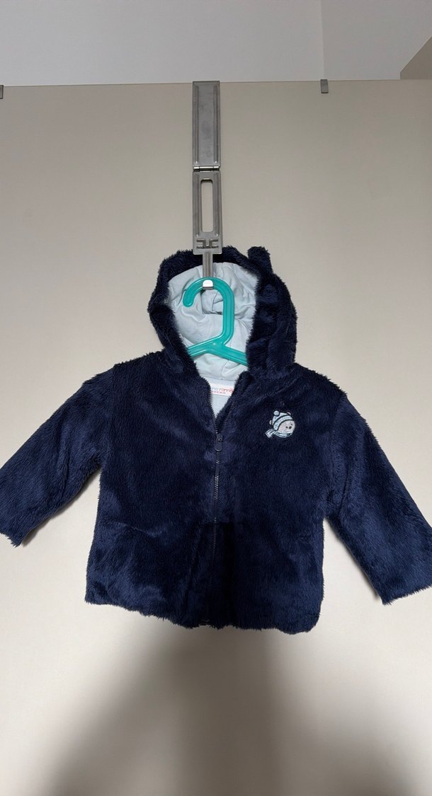 Erkek çocuklar için kapüşonlu, kürk detaylı ve yumuşak fleece kumaştan yapılmış, fitted kesim lacivert mont. İçi pamuk astarlı, kalın ceket.