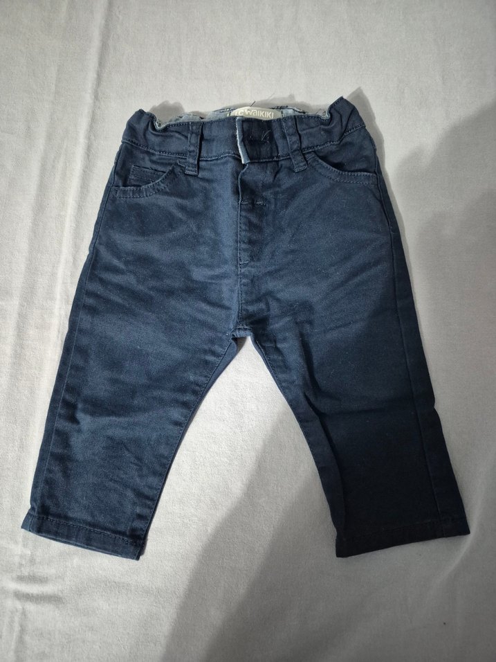 Erkek çocuklar için kemerli, düz ve desen içermeyen gri-mavi tonlarında, rahat kesim denim pantolon. Normcore tarzda, temel bir model.