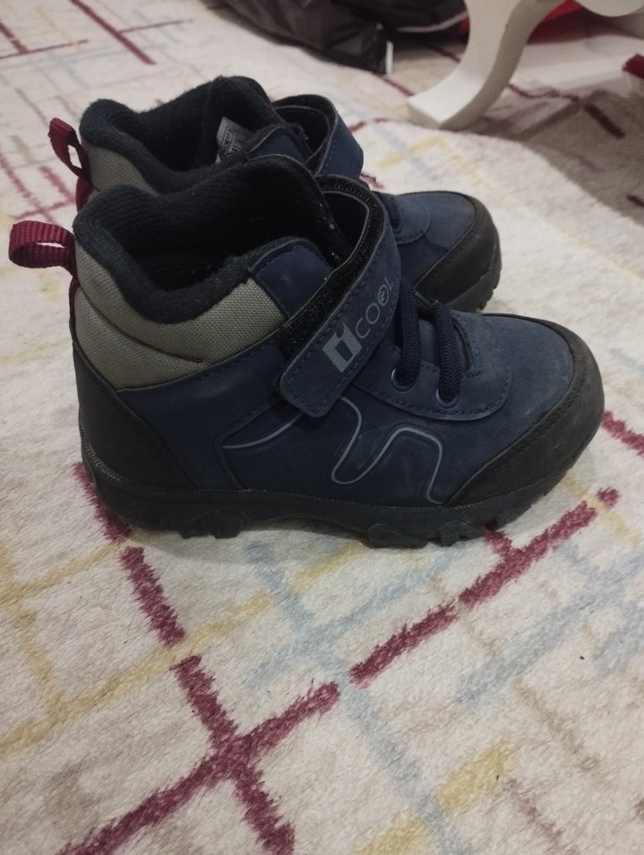 Lacivert renkli erkek çocuk botları, kauçuk tabanlı, cırt cırtlı ve bağcıklı, sokak tarzına uygun.