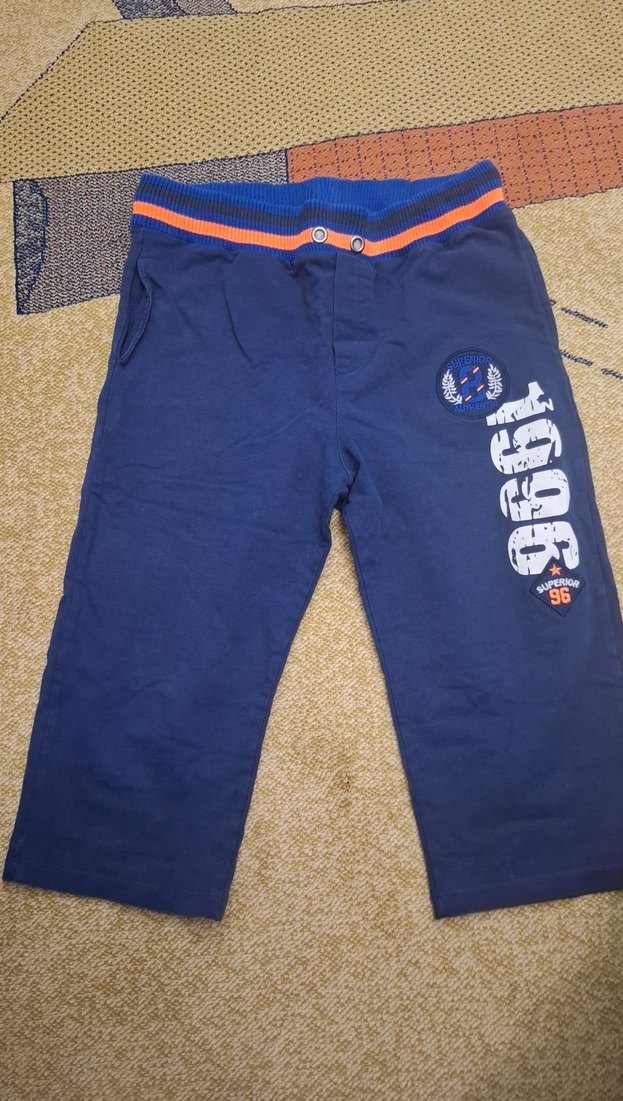 Erkek çocuklar için bol kesim, koyu mavi renkli, baskılı ve düğmeli şort. Bel kısmında turuncu çizgi bulunur, baskıda '1996' yılı yer alır.