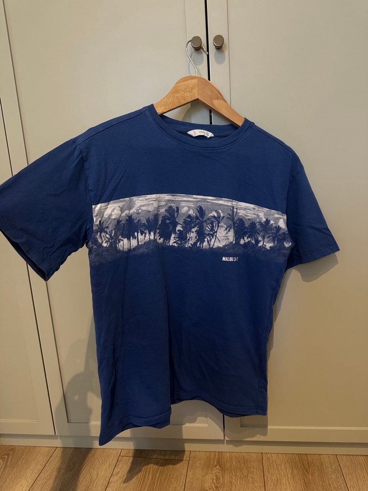 Erkek çocuklar için kısa kollu, bol kesim ve bisiklet yaka tişört. Denim kumaştan üretilmiş, göğüs kısmında baskılı desen bulunur. Lacivert tonlarda, rahat sokak stili için uygundur.