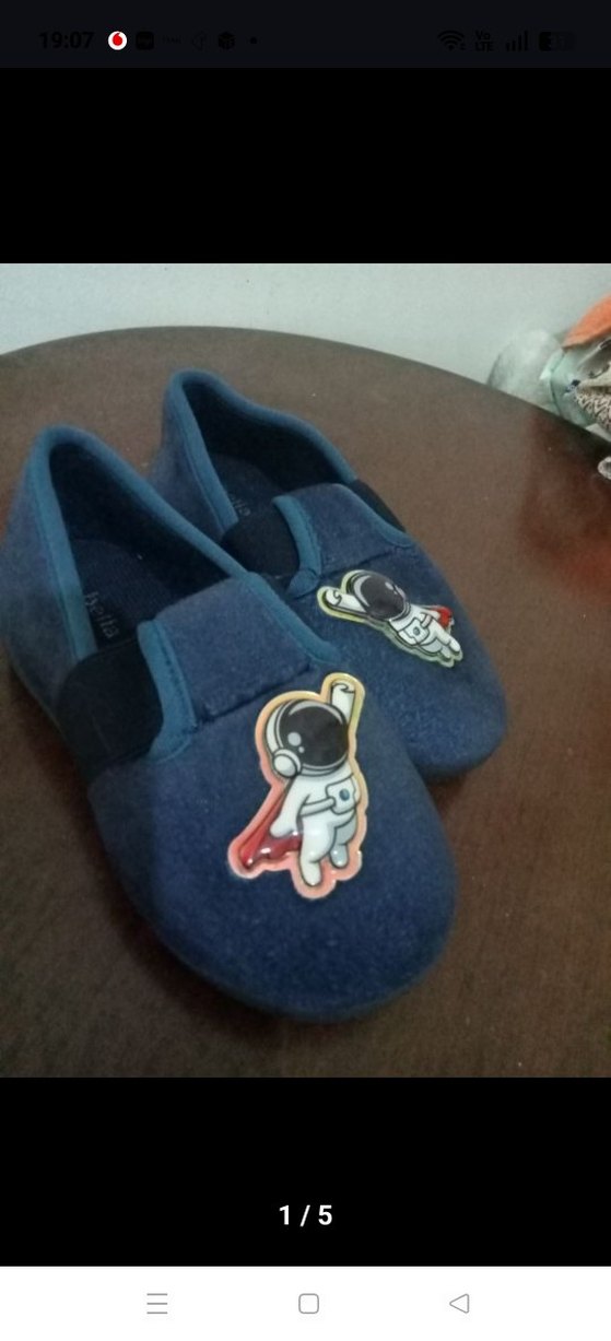 Yumuşak fleece kumaştan yapılmış, lacivert renkli, astronot baskılı erkek çocuk panduf