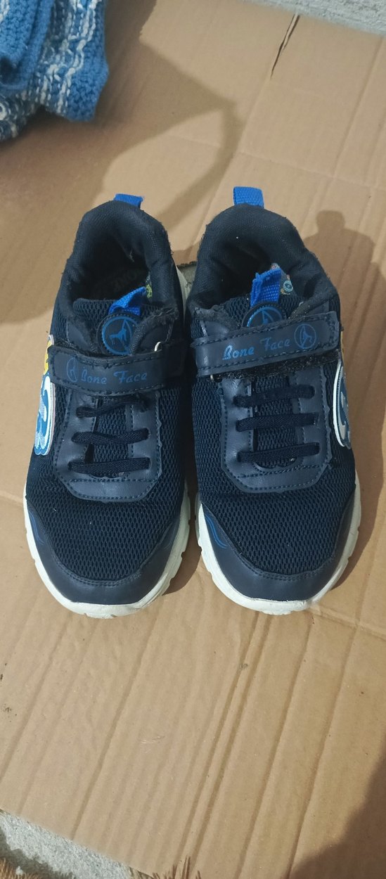Lacivert renkli, baskılı desenli erkek çocuk spor ayakkabısı, cırt cırtlı ve kauçuk tabanlıdır, sokak stiline uygundur.