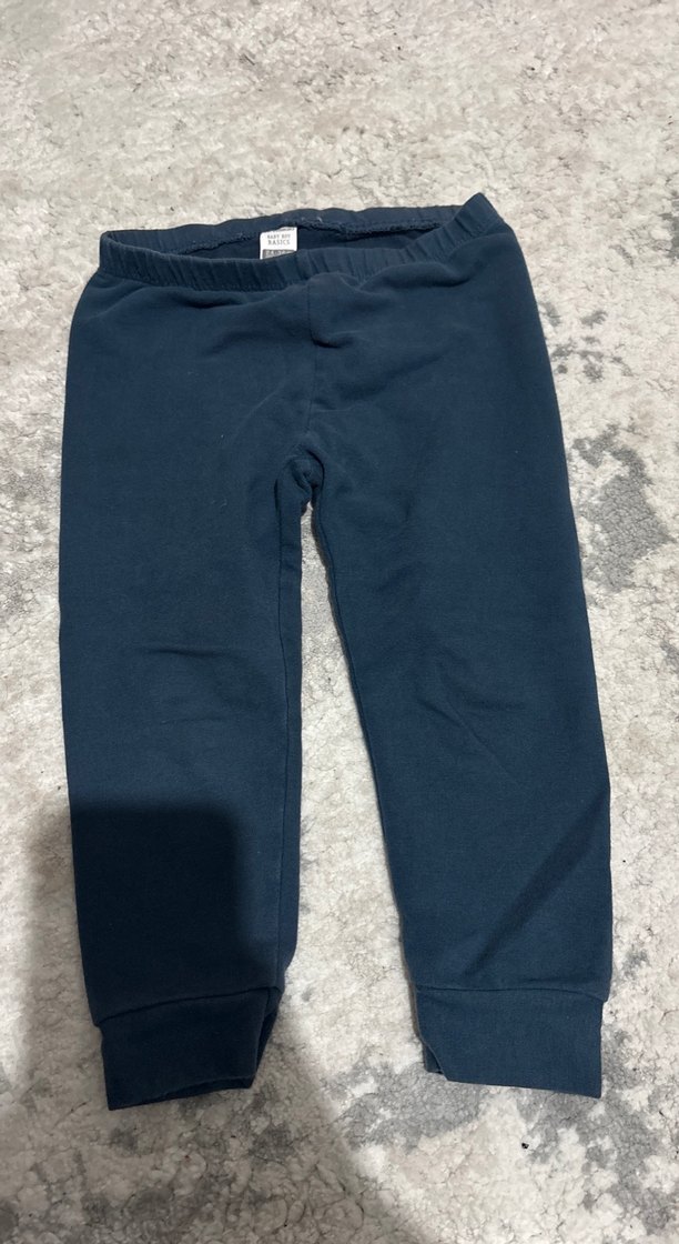 Kıs çocuklar için dar kesim, koyu mavi renkli, yumuşak ve sıcak kumaştan yapılmış elastik bel bantlı pantolon. Düz deseniyle zahmetsiz şıklık sunar.