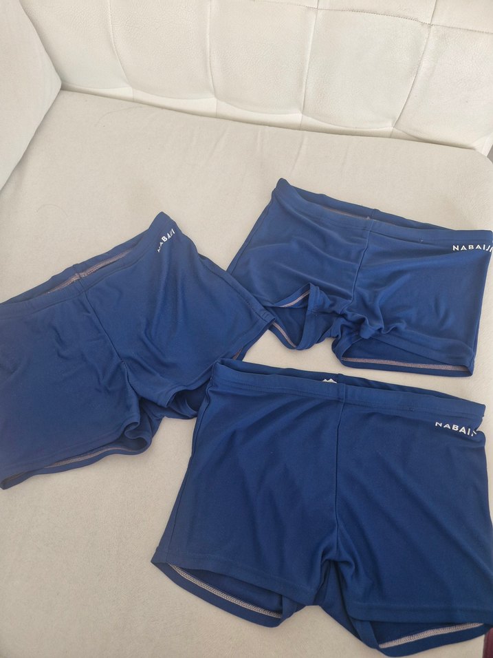 Düz lacivert renkli, kısa erkek çocuk mayo şortları, yumuşak ve çabuk kuruyan kumaştan üretilmiştir. decathlon mayolqr 3 adet fiyatıdır. Arka kumaşta incelemeler ve bel lastiklerinde gevseme vardır.
