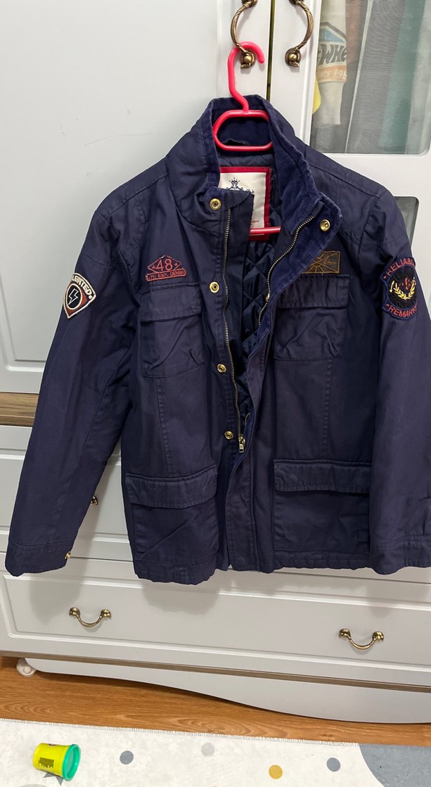 Erkek çocuk için lacivert denim ceket, düğmeli ve regular fit kesimlidir. Çoklu cepler ve nakışlı yamalarla sokak stilini yansıtır. Fermarının ucu yaptırlacak sadece.