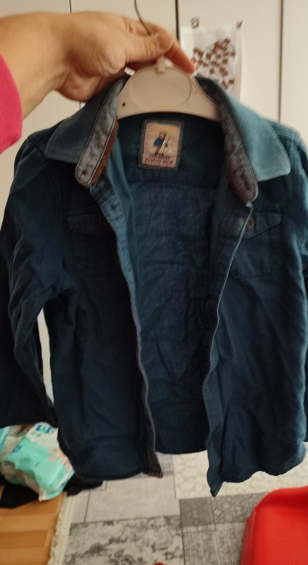 Uzun kollu, düğmeli ve kesik yaka detaylı erkek çocuk lacivert denim gömlek. Rahat kesimiyle trend sokak stiline uygundur. fotoğraftan gözüktüğünden daha iyi durumda