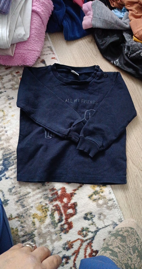 Erkek çocuk için uzun kollu, bisiklet yaka, örme denim kumaştan lacivert sweatshirt. Bol kesim ve önünde "ALL MY FRIEND" baskısı bulunur.
