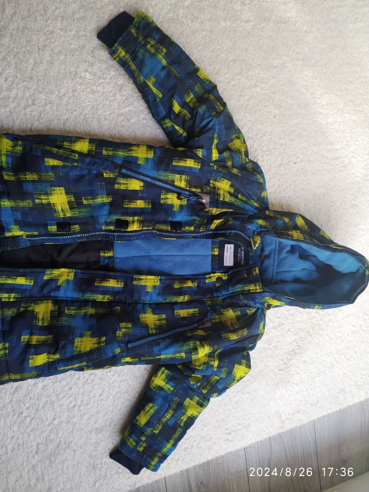 Erkek çocuk için fitted kesim, fermuarlı ve notched lapel yakalı lacivert desenli mont. Sentetik kumaştan, streetwear tarzında.