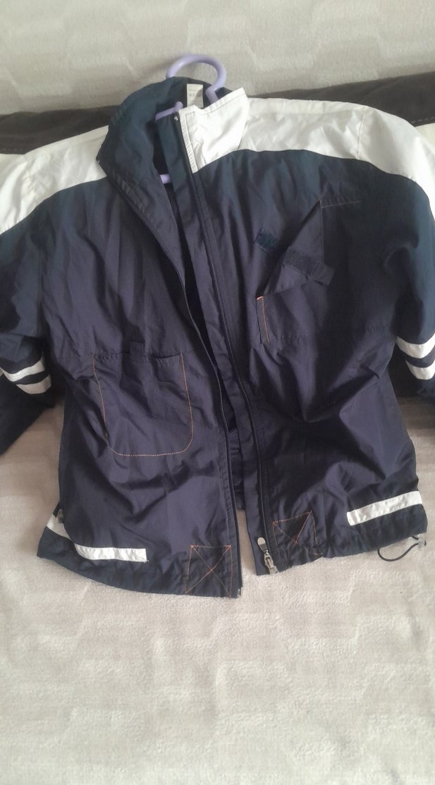Erkek çocuklar için fermuarlı, fitted kesim lacivert ceket. Notched lapel yaka ve beyaz detaylara sahip, sıcak ve yumuşak dokulu kumaştan üretilmiştir.