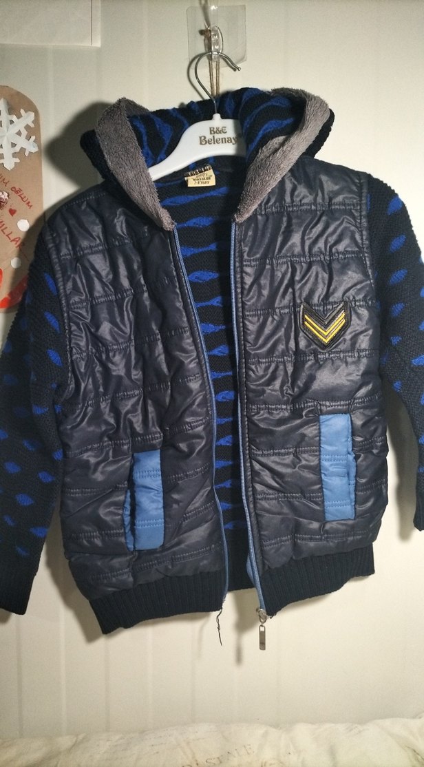 Lacivert erkek çocuk ceketi, notched lapel yakalı ve fermuarlı. Yumuşak fleece astarlı, regular fit ve streetwear tarzında. Cep detayları ve mavi vurgu bulunur.