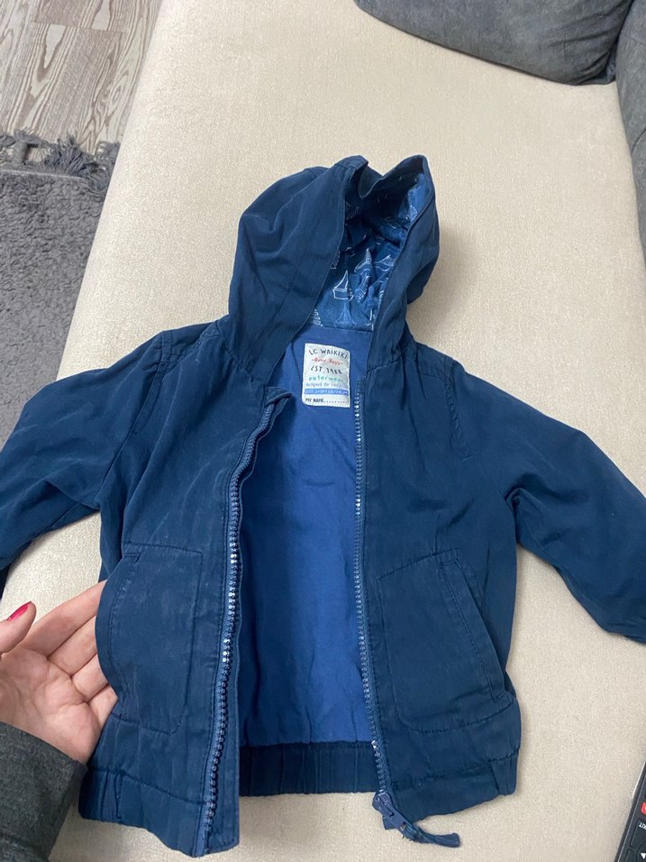 Erkek çocuklar için lacivert, fermuarlı ve yaka detaylı, yumuşak ve sıcak kumaştan yapılmış dar kesim ceket. Hiçbir sorunu yoktur