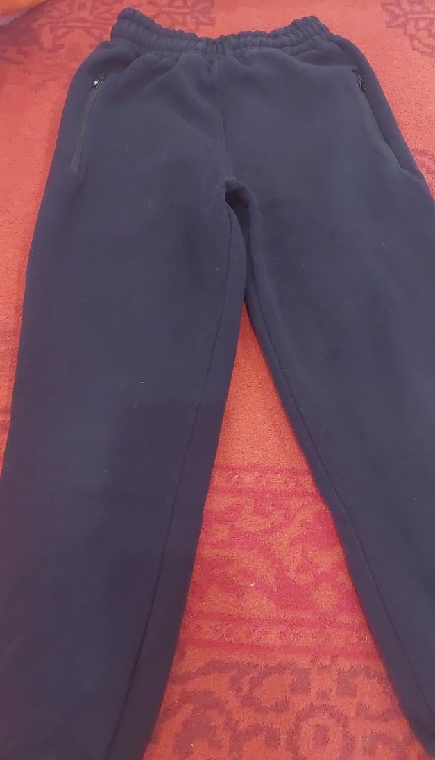Lacivert, fermuarlı cepleri olan, rahat kesim ve yumuşak sıcak kumaştan erkek çocuk eşofman altı. Desensiz tasarım.