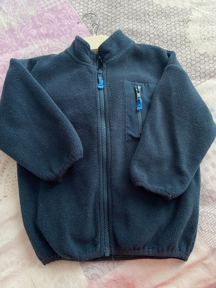 Bu erkek çocuk ceketi koyu mavi renkte, yumuşak ve sıcak kumaştan yapılmıştır. Fermuarlı ön kısmı ve kesik yakası vardır, bol kesimdir. Rahat kullanıma uygundur. Bi kaç defa kullanıldı