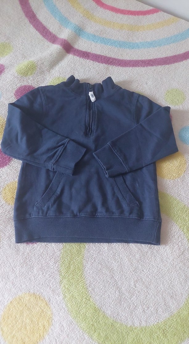 Erkek çocuk için koyu lacivert renkli, uzun kollu, yuvarlak yakalı fermuarlı sweatshirt. Rahat kesim ve yumuşak, sıcak kumaştan üretilmiştir. Düz ve sade tasarıma sahiptir.