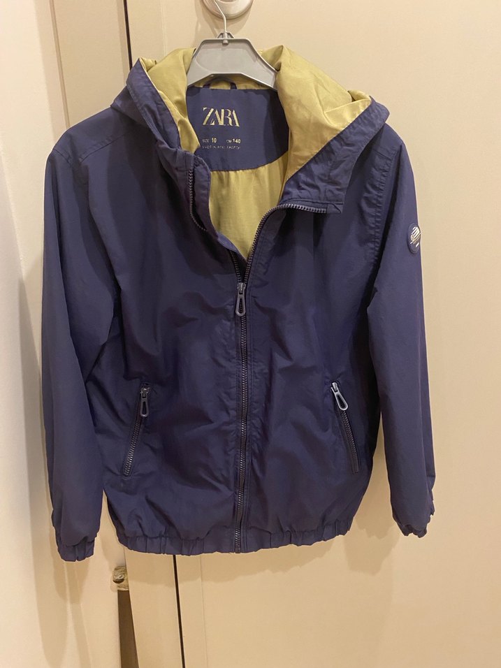 Erkek çocuk için fermuarlı, bol kesim ve kesik yaka detaylı ceket. Yumuşak ve su itici kumaştan, koyu mavi dış yüzey ve açık iç astar ile. Rahat sokak stili için uygun.