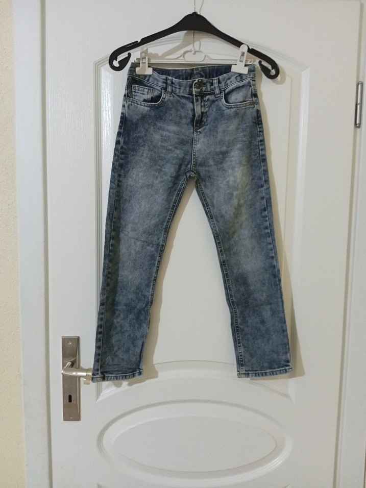 Lacivert Gri batik desenli, regular fit, tokalı erkek çocuk denim pantolon, trend sokak stili için uygun.