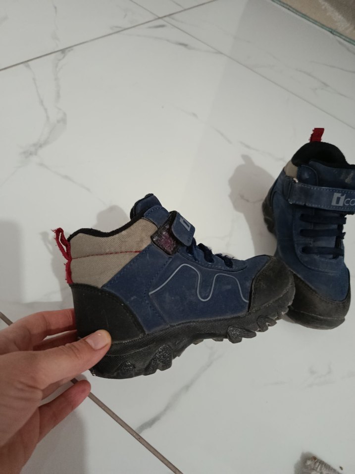 Lacivert ve gri kauçuk botlar, cırt cırtlı, trend sokak tarzına uygun. Dayanıklı ve rahat, kaymaz tabanlı.