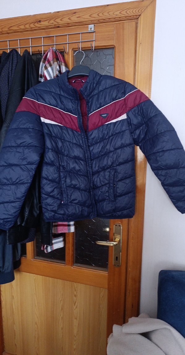 Lacivert renkli, kapitone desenli, fermuarlı ve fitted kesim erkek çocuk mont, rahat sokak stili için uygundur.