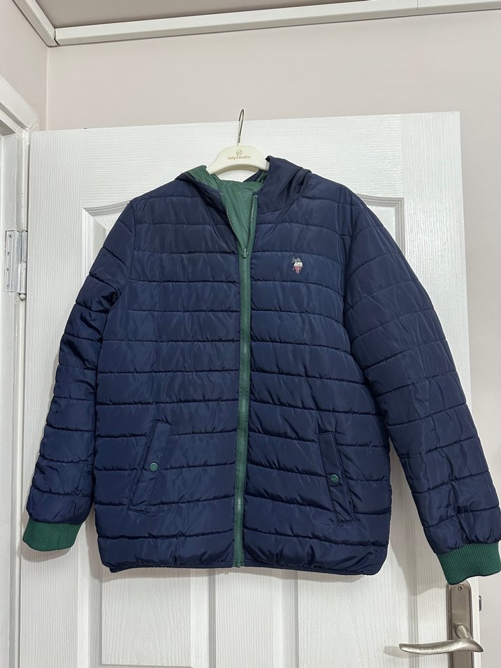 Fermuarlı ve kapüşonlu, lacivert renkli, erkek çocuklar için kapitone mont. ufak kusurların haricinde temizdir