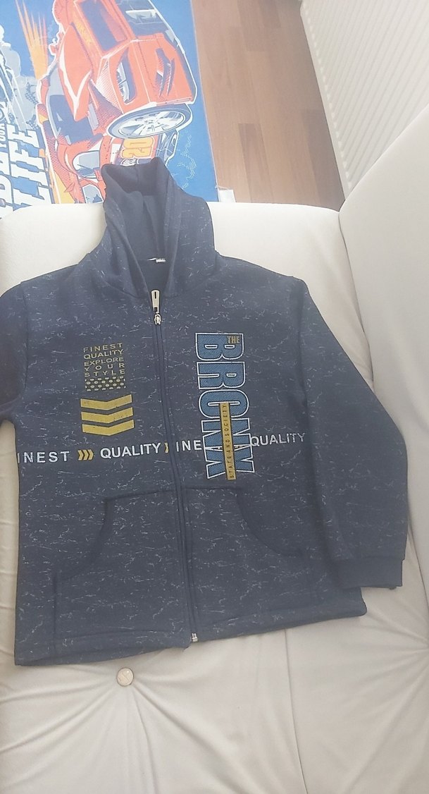 Erkek çocuklar için kapüşonlu ve fermuarlı, yumuşak tüylü kumaştan yapılmış dar kesim sweatshirt. Uzun kollu ve baskılı desenli, kaliteli yazılar içerir. Trendy sokak stili için uygun.
