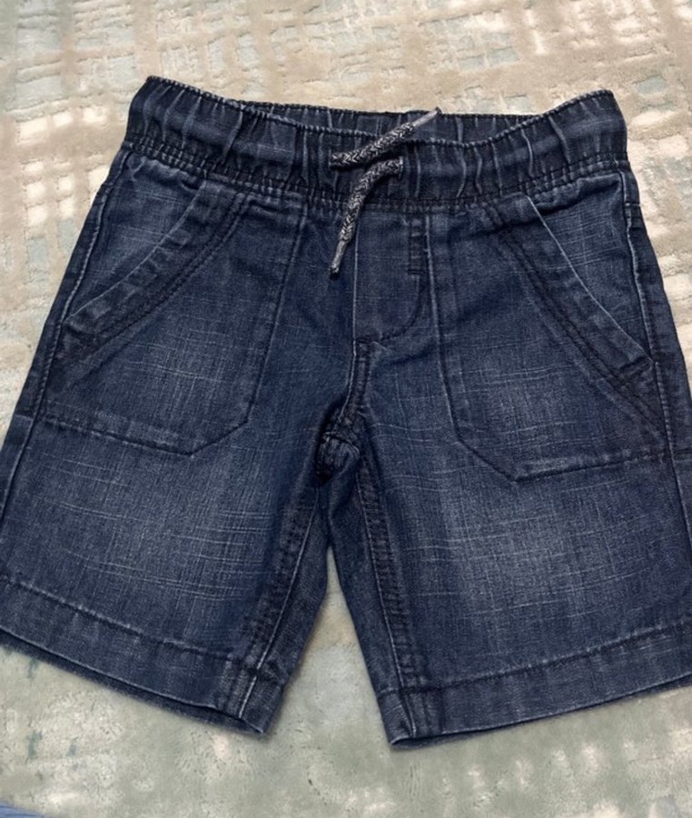 Erkek çocuklar için belden kemerli, bol kesim lacivert kot şort. Rahat ve desensiz, sokak tarzına uygun.
