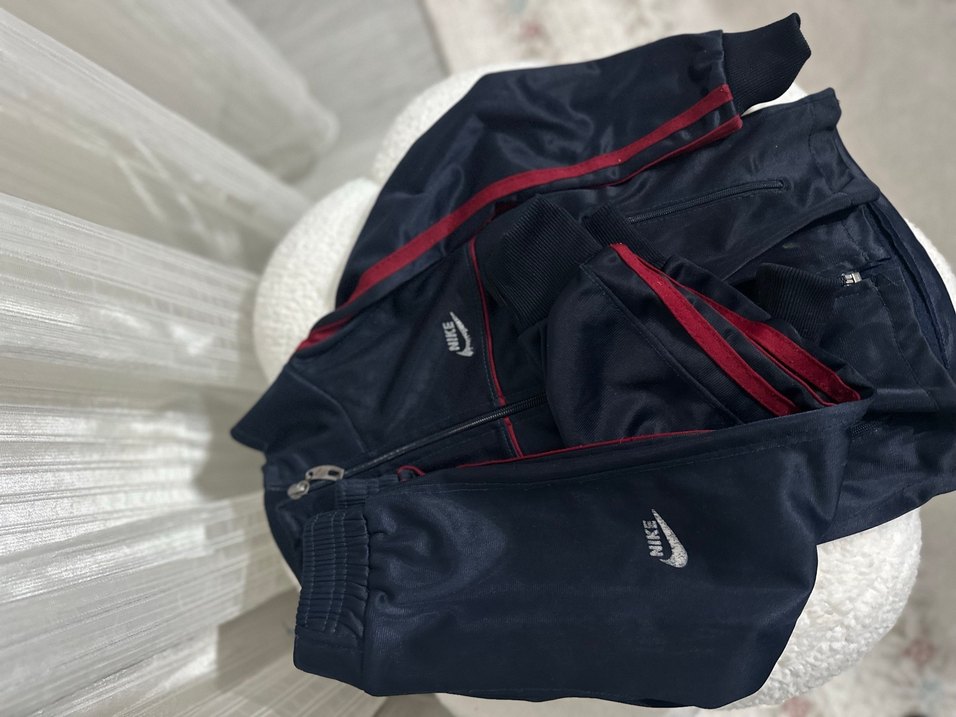 Lacivert Nike erkek çocuk eşofman takımı, yüksek yaka ve fermuarlı ön yapıya sahiptir. Pürüzsüz sentetik kumaştan üretilmiştir, sokak stili için uygundur.
