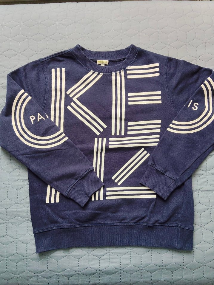 Orjinal Kenzo erkek çocuklar için uzun kollu, yuvarlak yakalı ve bol kesim sweatshirt. Yumuşak, örme kumaştan yapılmış koyu mavi renkte ve büyük baskılı