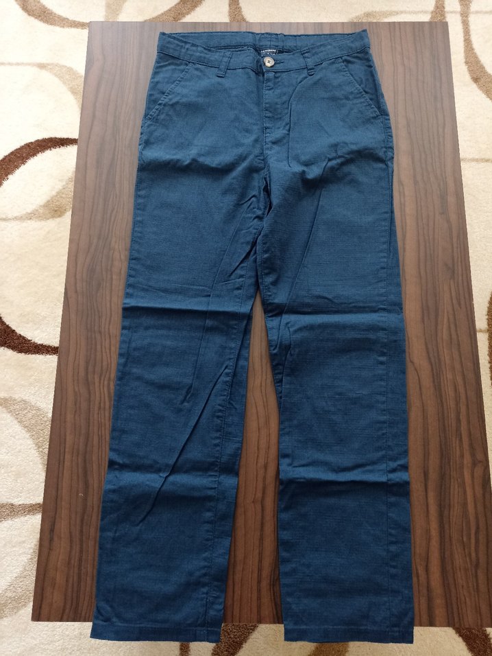 Erkekler için lacivert pantolon, normal kesim. Günlük kullanıma uygun, rahat ve şık, ince kumaş baharda giyilir