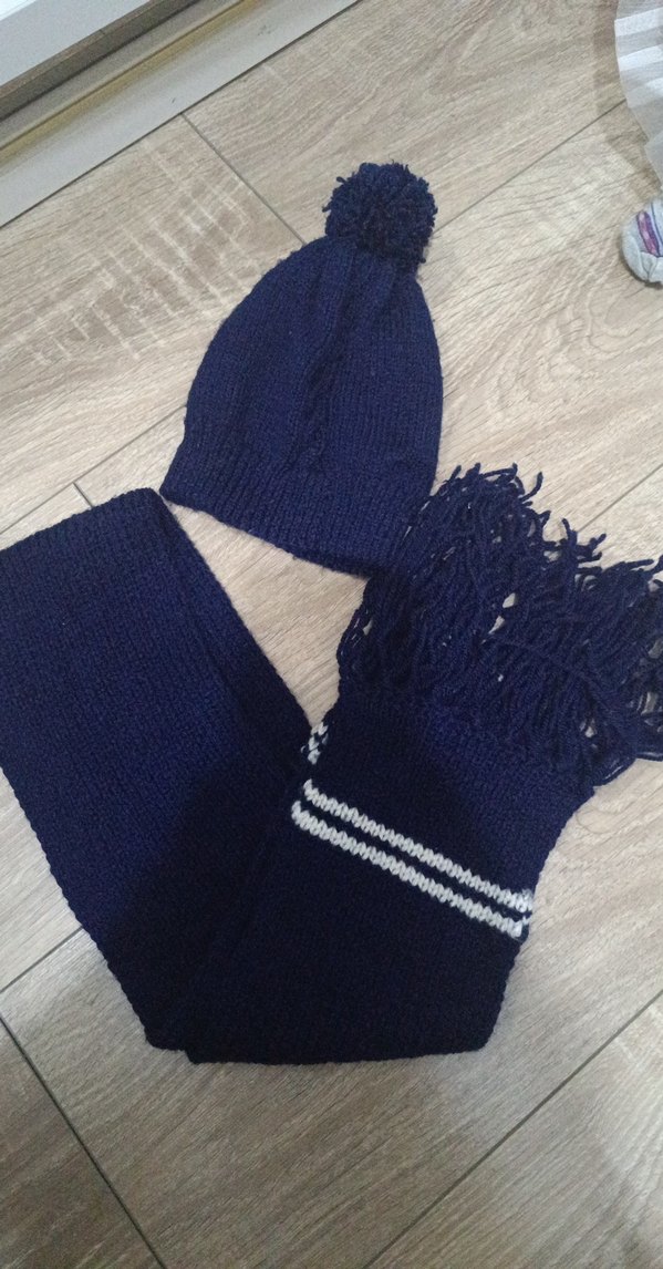 Erkek Çocuk Lacivert Ponponlu Bere ve Atkı Seti